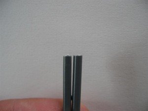 4 pav. pavaizduota, kaip abi replės kerpa plastmasę. Kairėje plastmasinis strypelis nukirptas pirmosiomis replėmis, dešinėje – antrosiomis.
