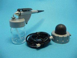 Su aerografu galima labai kokybiškai nudažyti modelius. Tiesa, tam reikia įgyti patirties ir pasiskaityti mokomosios literatūros. Pradedantiesiems galima įsigyti paprasčiausių aerografų, kurie kainuoja keliasdešimt litų. Aerografui, žinoma, reikės ir kompresoriaus, tačiau pradžiai galima pasinaudoti ir suslėgto oro balionėliais, bet atsižvelgiant į jų kainą, labiau apsimokėtų pirktis kompresorių, 24 pav.