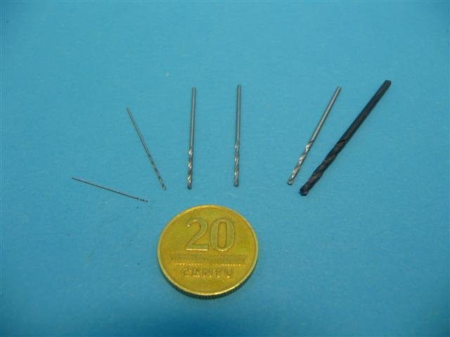 Mažų grąžtelių, 16 pav., galima rasti įrankių parduotuvėse. Jie nėra brangūs. Tam, kad jais pasinaudotumėte, jums bus reikalingas papildomas įrankis, bet tam galite panaudoti ir peiliukų tvirtinimo rankenėles, kad rankomis galėtume išgręžti reikiamas skylutes. Taip pat galima naudoti ir elektrinį grąžtą, bet apie tai šiek tiek vėliau.