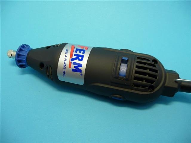Tai įrankis, kuris gali palengvinti daugelį darbų. Su šiuo įrankiu galima gręžti skylutes, pjauti plastiką, pasinaudojant pjovimo diskeliais, valyti plastiką nuo prielajų, šlifuoti, labai patogu gaminti ratus iš popieriaus ir t.t. Perkant reikia atkreipti dėmesį į tai, kad reguliuotųsi prietaiso sukimosi greitis, nes sukantis jam maksimaliais sūkiais, gali tapti sunku pragręžti duslintuvo gale skylę. Dėl didelių sūkių taip pat gali pradėti tirpti plastikas, 21 pav.