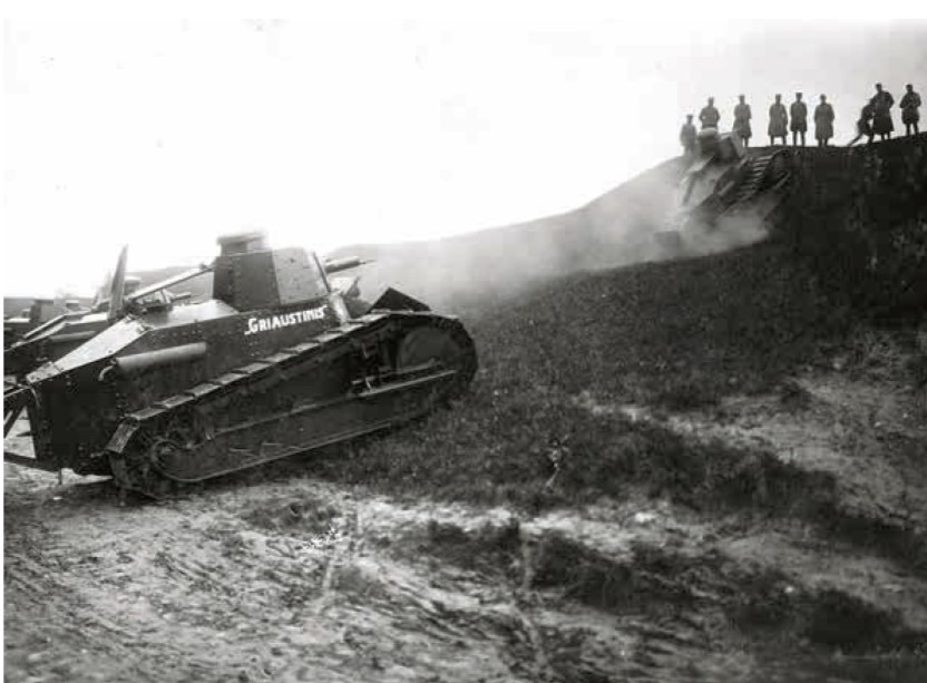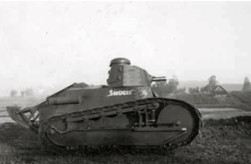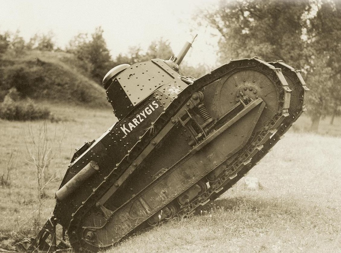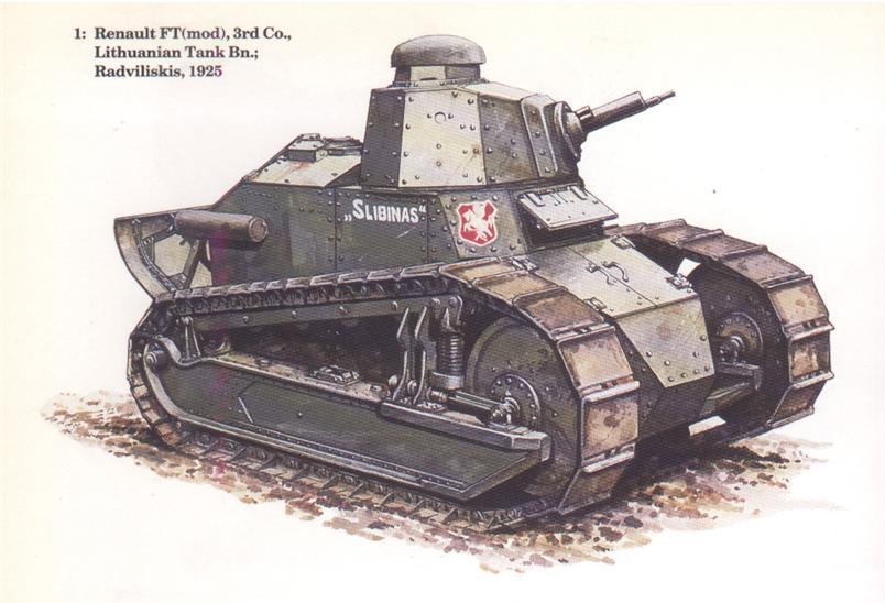 Dėl Gedimino stulpų remiuosi kito tanko dažymu todėl, kad Renault perženklinti matyt tuo pačiu metu, kai buvo sužymėti ir Vickers, todėl labai tikėtina, kad žymėjimo tvarka buvo ta pati.