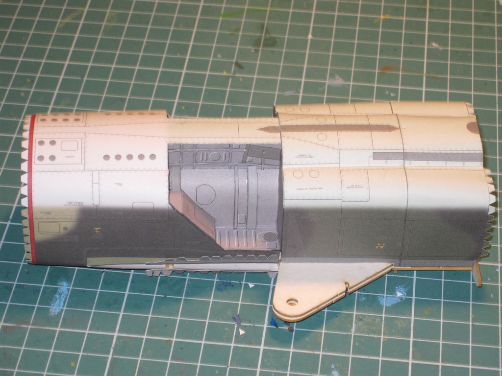Bandau toliau suklijuoti centrinę fiuzeliažo dalį. Sudėtingiausią detalę mausiu kaip kojinę. Trečias bandymas... :lol: :lol: :lol:
